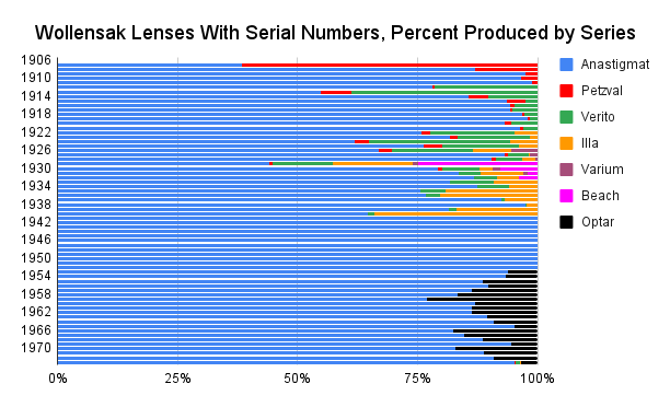 | Year | Anastigmat | Petzval | Verito | Series IIIa | Varium | Beach | Optar |
